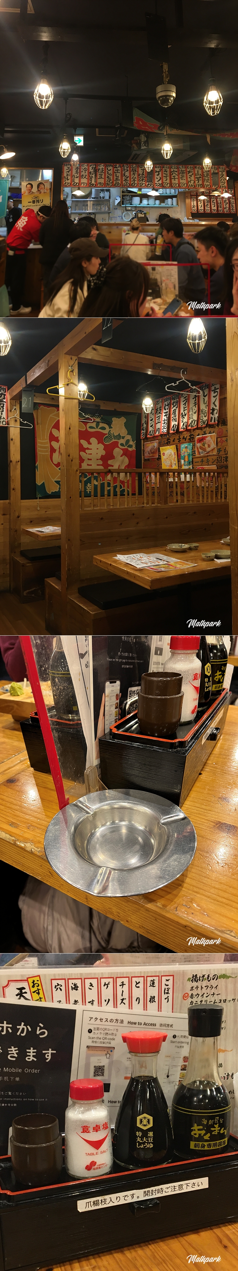 실내로 들어가니 많은 사람들로 활기가 넘칩니다. 비어 있던 자리도 잠시 후 가득 차고 종업원들의 파이팅 넘치는 함성이 터지는 분주한 가게입니다. 그런데, 아뿔싸 전 좌석 흡연 가능한 술집이어서 곳곳에서 담배연기가 모락모락. 아이들에겐 미안했으나 그나마 환기가 잘 되는 편이어서 양해를 구하고 눌러앉기로 합니다.