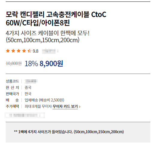 50cm, 100cm짜리 '주파집' 케이블을 몇 개 사두고 잘 사용하던 중 충전이 됐다가 안 됐다가 오락가락하기 시작하여 스트레스를 받을 즈음 가성비 괜찮은 물건을 발견합니다.
