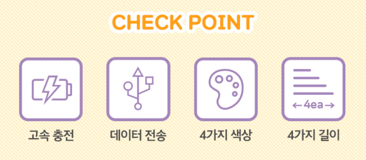 네 가지 색깔에 네 가지 길이에 데이터 전송까지 되는데 이 정도면 혜자 아닙니까.