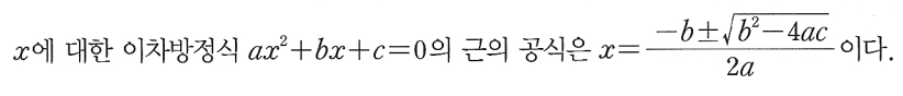 근의 공식을 보면 양의 유리수로 설명되지 못하는 수가 나타난다.