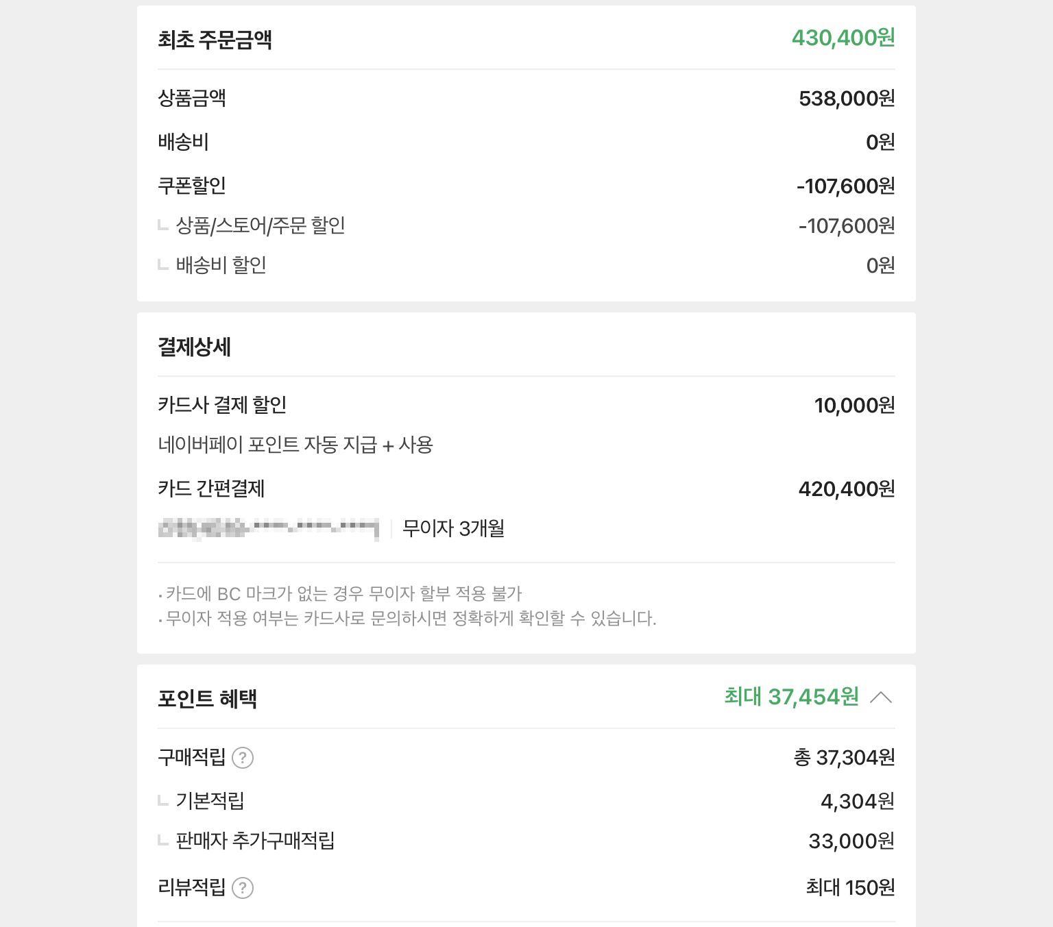 예기치 않은 쿠폰과 이런저런 할인을 더해 정가보다 훨씬 싸게 결재했습니다.